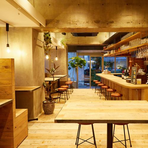 ◆入口から店内奥までが色々な用途で使えるこだわりの空間◆入口は展示やポップアップイベントができるようなスペースに、中央部分はごはんやお酒がメインのリラックススペースに、奥のwork部分はお仕事や会議で使えるスペースに。それぞれ異なる用途をこの空間1つで完結できる、こだわりの空間です。